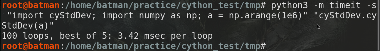 It take 3.42 msec per loop. However I didn’t even use the power of cython. Only compiled it with cython.